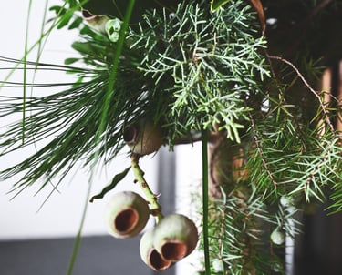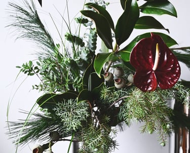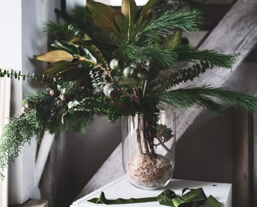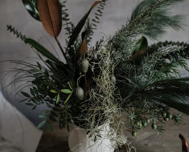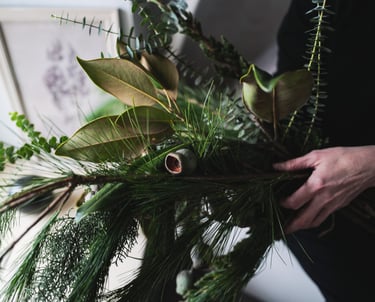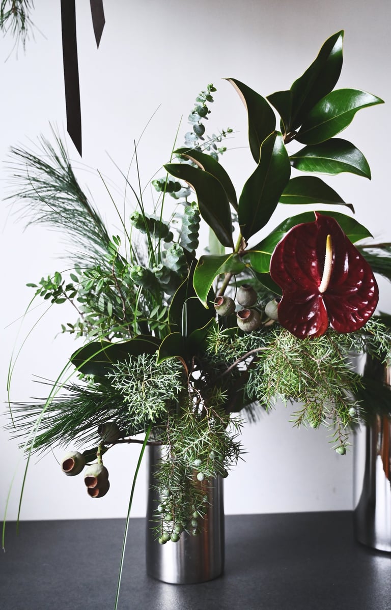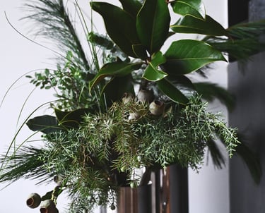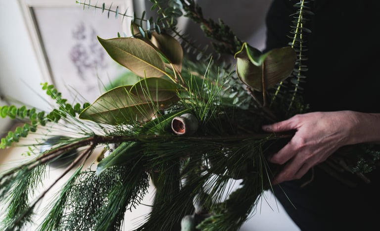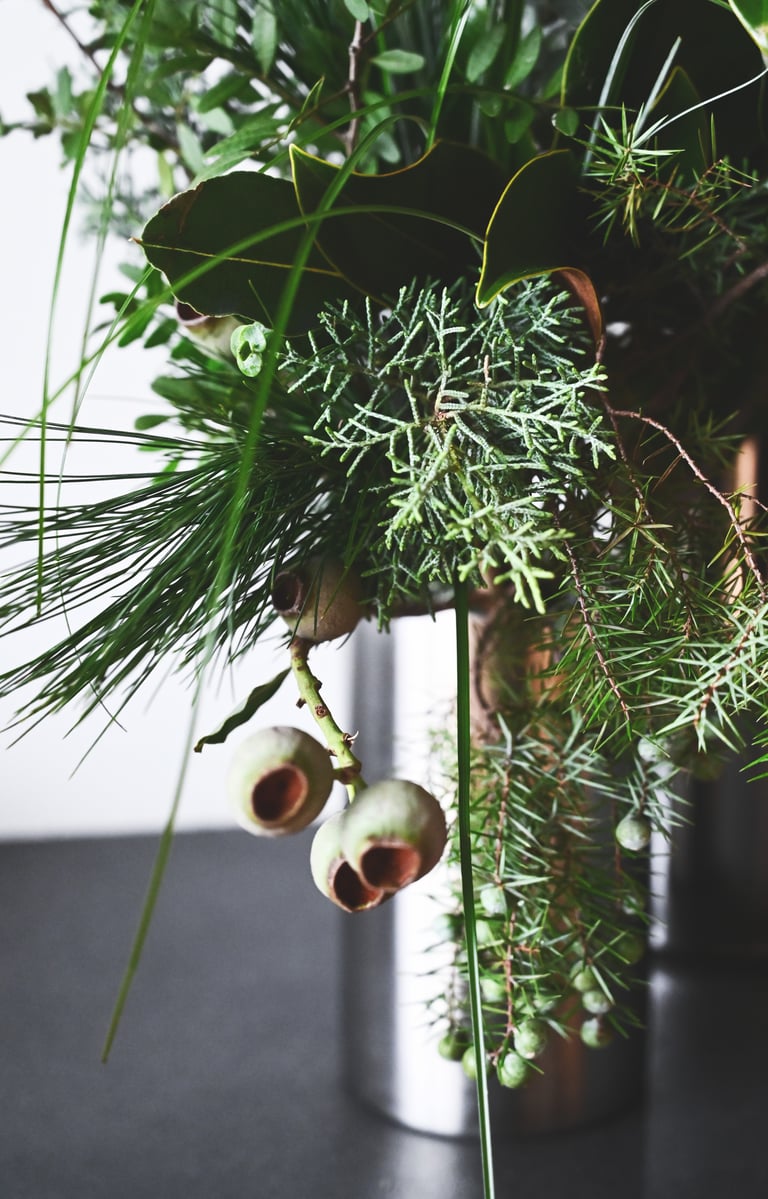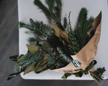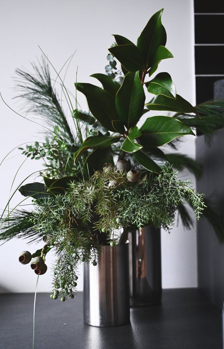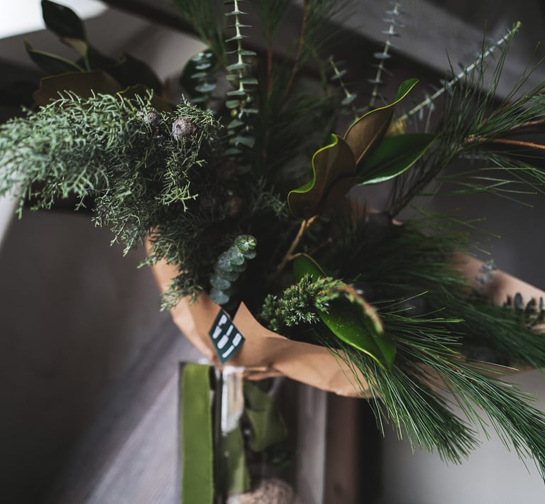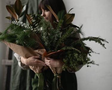 Nuo lapkričio vidurio pradedam kvepėti mišku, asortimente - masyvūs ir ilgai vazoje išsilaikantys žiemos lauknešėliai. Mixuose - magnolijų šakos, kadagiai, eukaliptai, australietiška ir vietinė pušis, kedras, kiparisas etc. Kasmet - vis kitaip, su nauju cinkeliu.