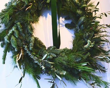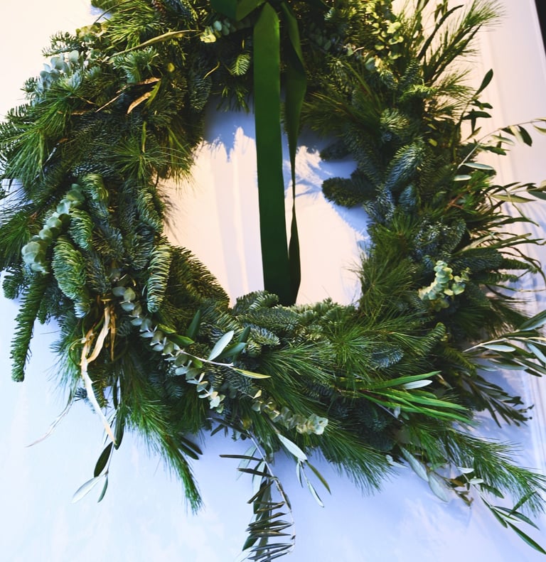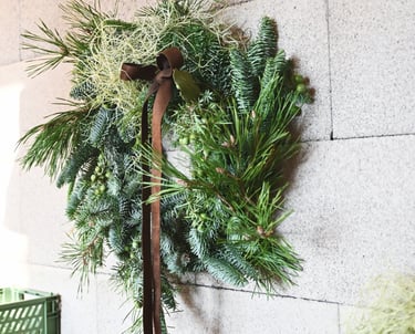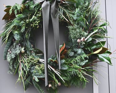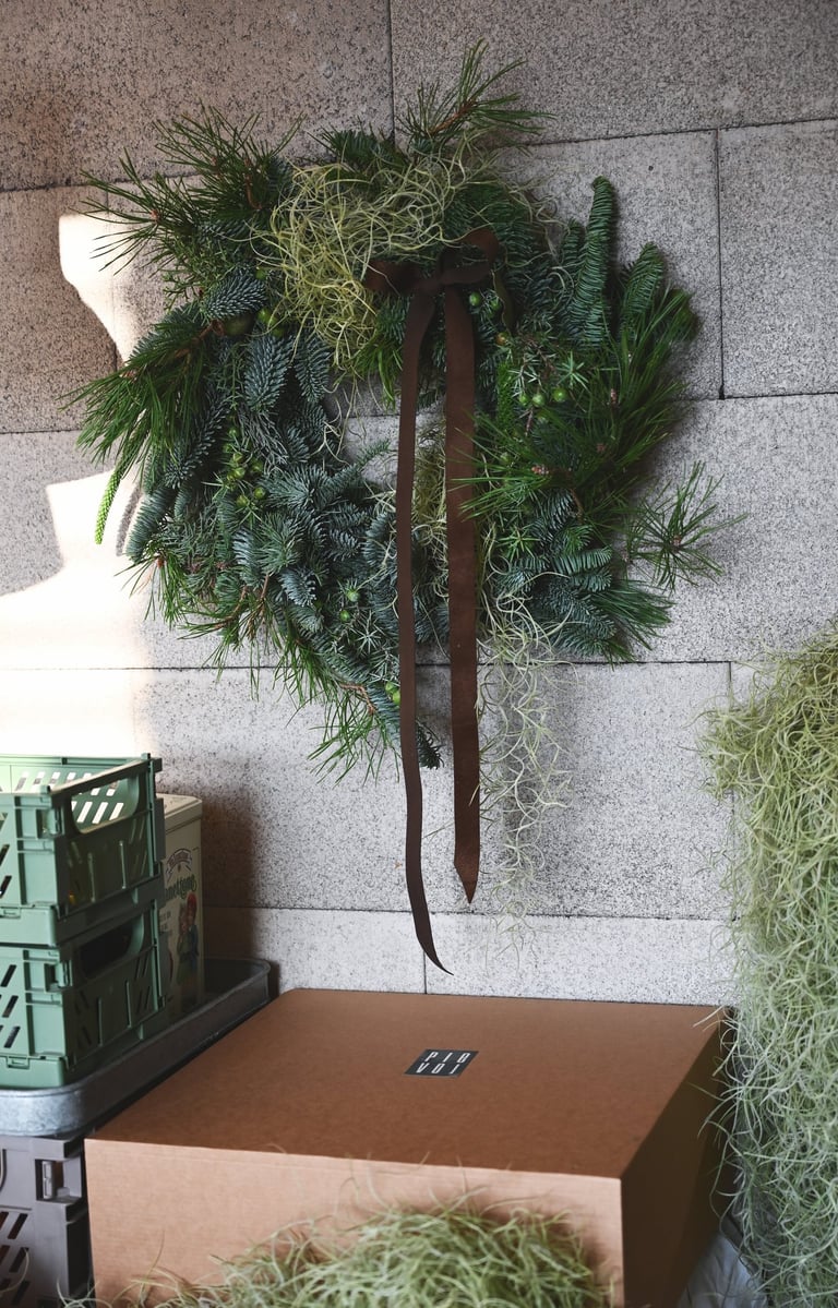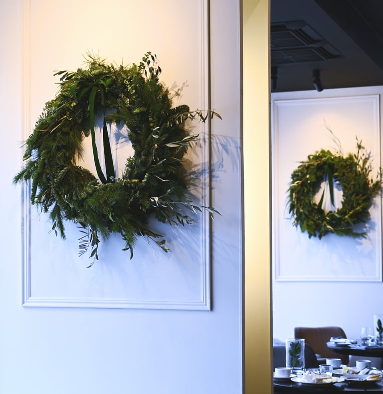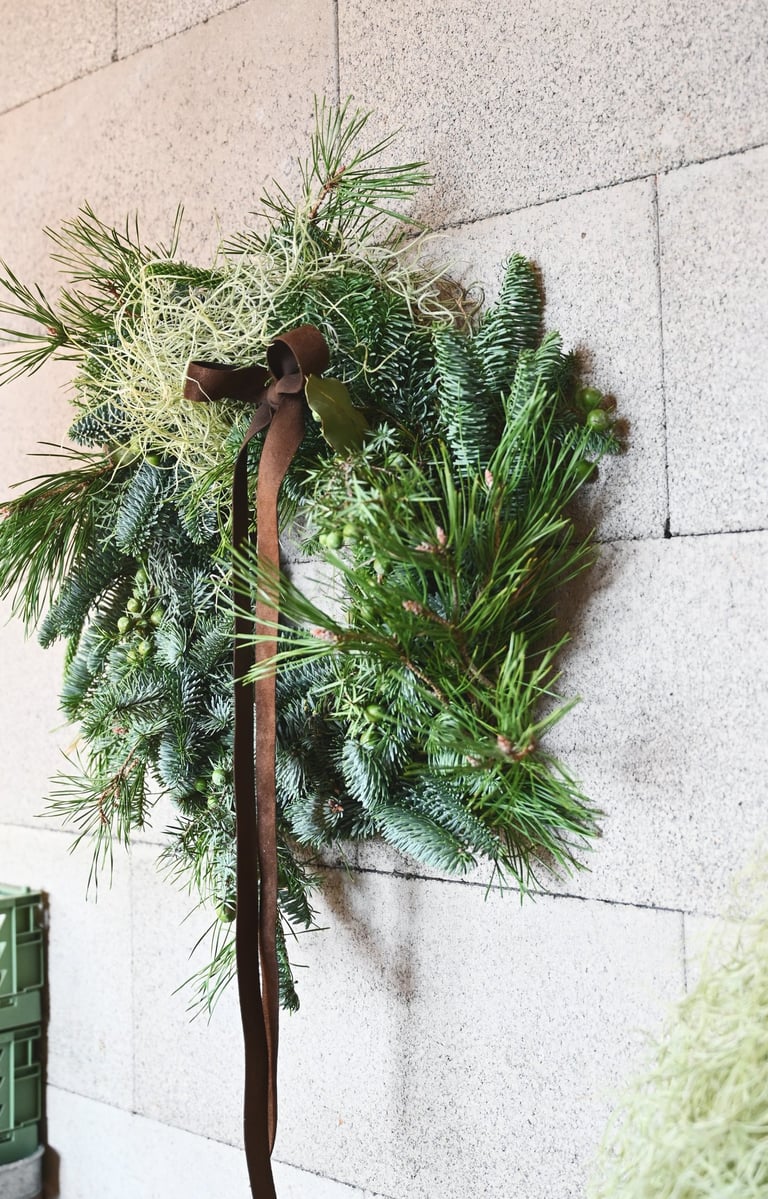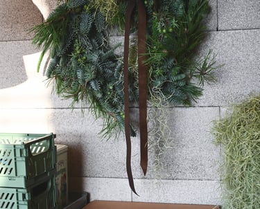 Kalėdiniai vainikai ruošiami individualiai (užsisakius) - 40/60/80 cm skersmens, gausūs natūralios miško floros ir netikėtų subtilių akcentų.