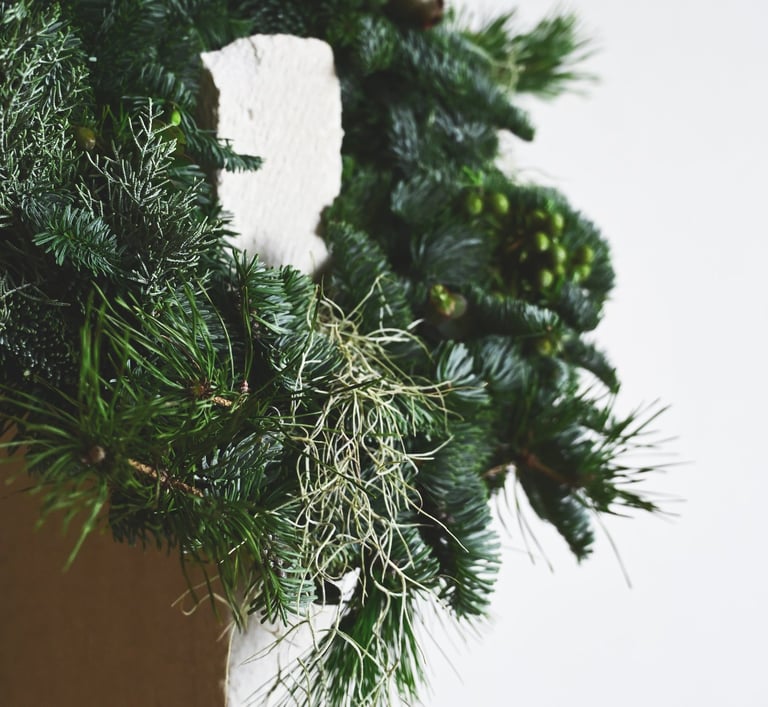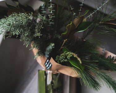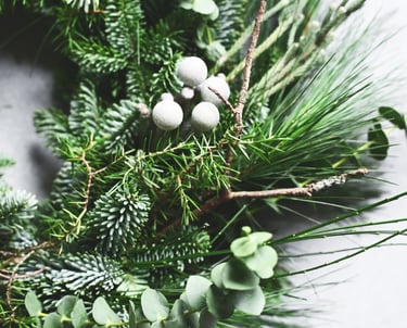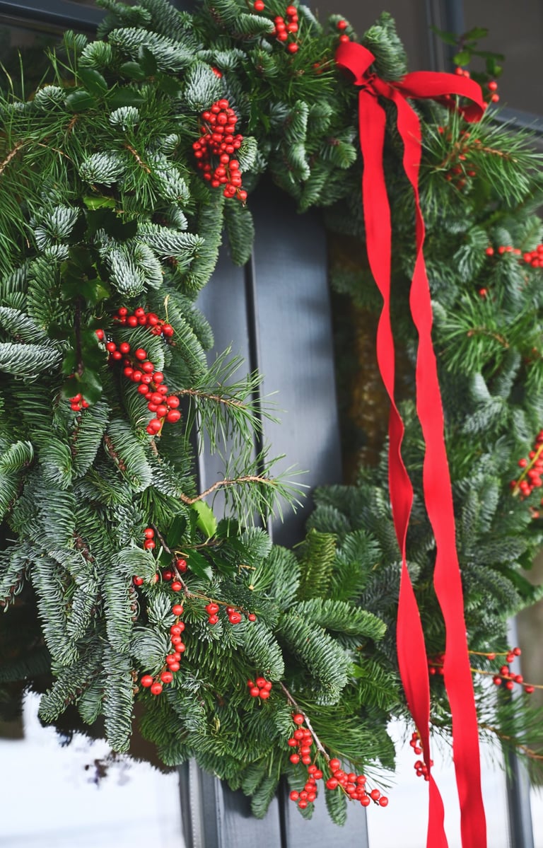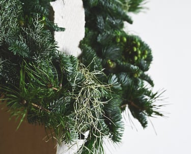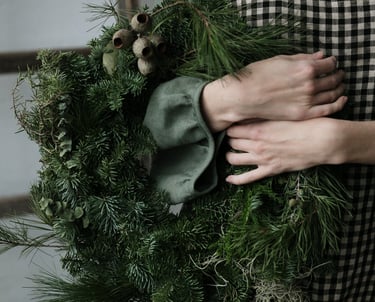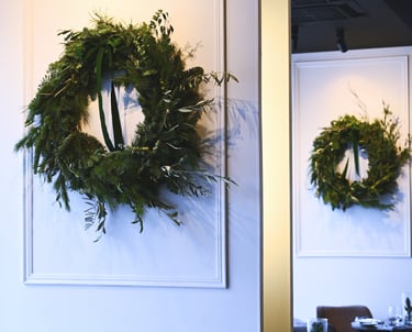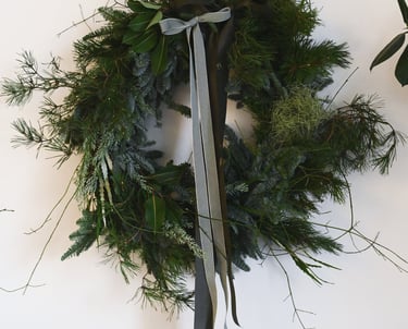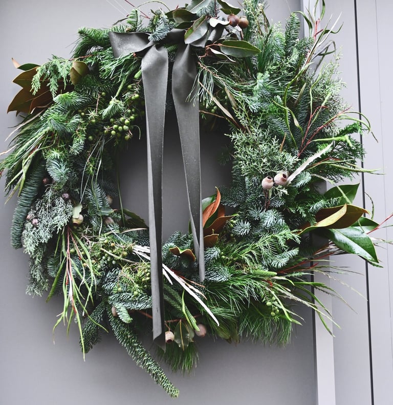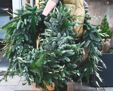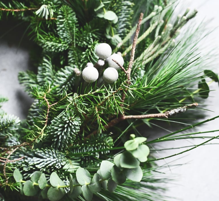 Kalėdiniai vainikai ruošiami individualiai (užsisakius) - 40/60/80 cm skersmens, gausūs natūralios miško floros ir netikėtų subtilių akcentų.