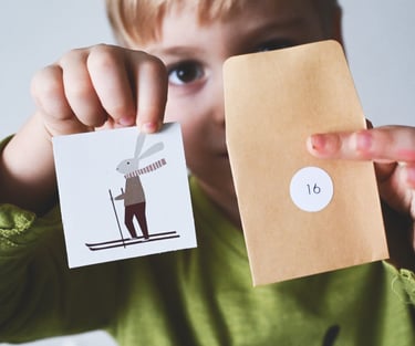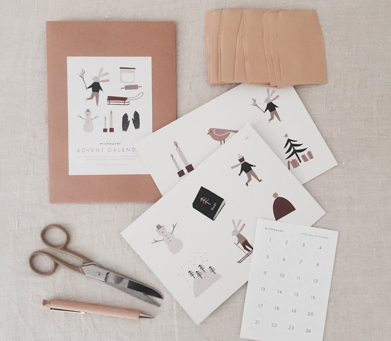 24 vokeliai, 24 kortelės, lipdukų su skaičiais lapas,