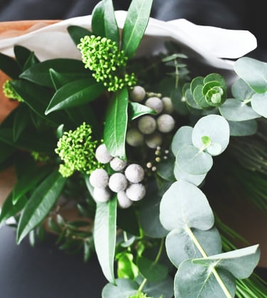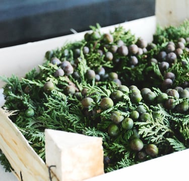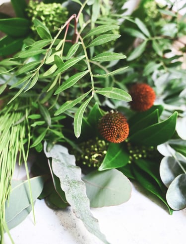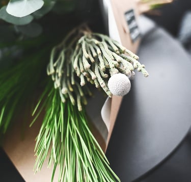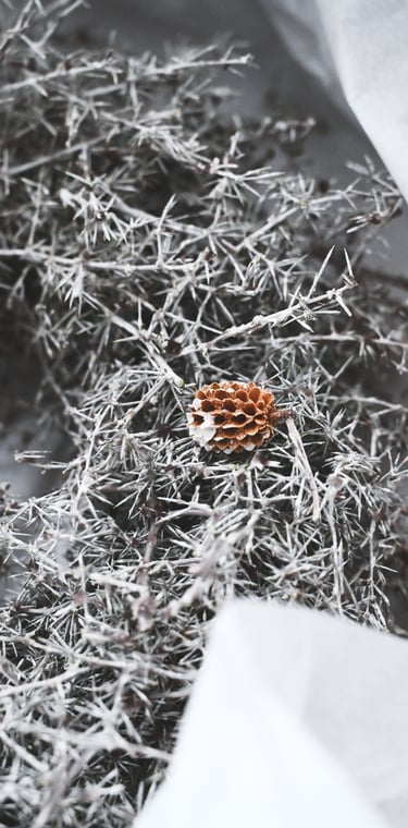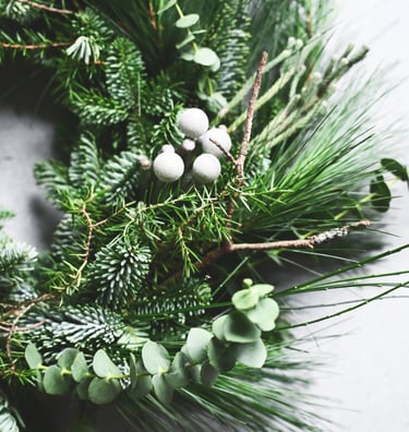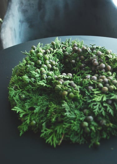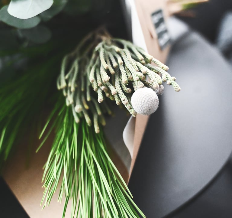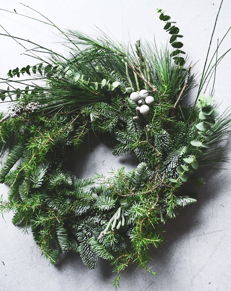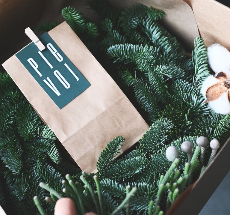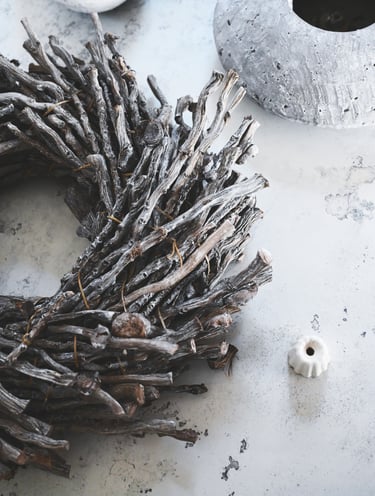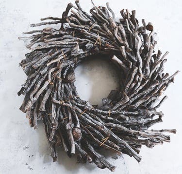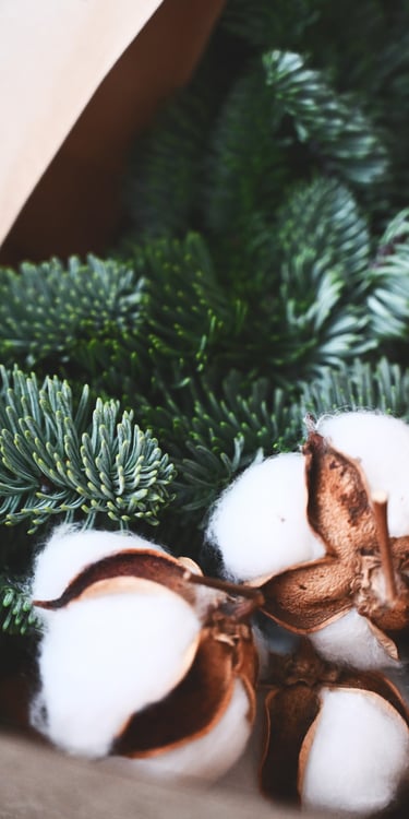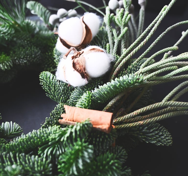 (kėnio pagrindas d30 cm, miško žaluma, brunijos, medvilnės žiedai, cinamonas, australietiška pušis, kankorėžiukai, karštų klijų įrankis).